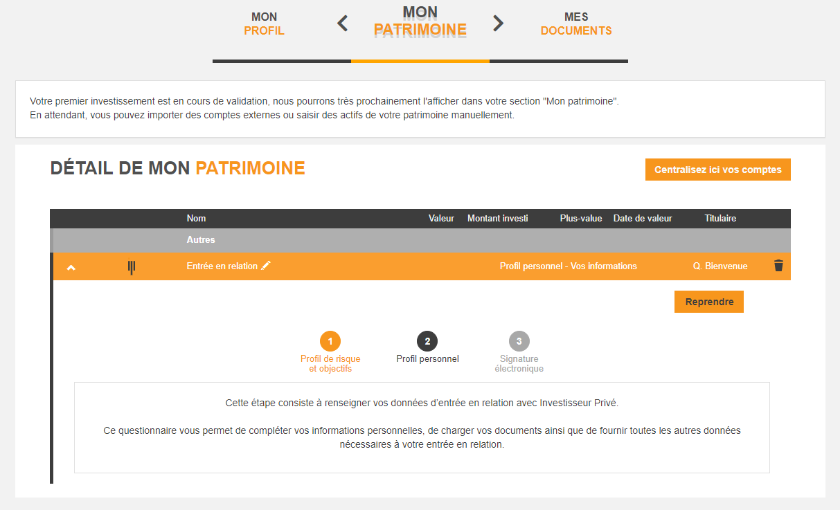 Ce processus repose sur la relation de confiance que vous nouerez au fil du temps avec votre conseiller dédié.